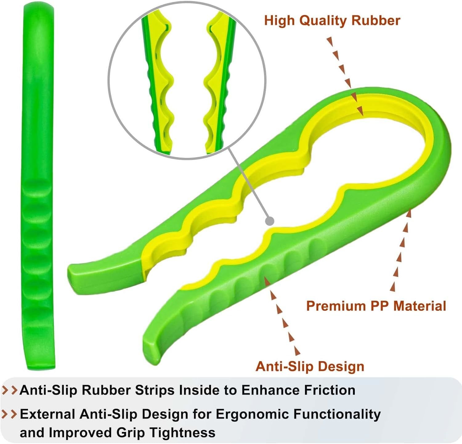 his 4 in 1 can opener is the ultimate tool for your kitchen needs! With its multifunctional design, you can easily open cans, jars and bottles with ease. The non-slip feature ensures a secure grip while the durable material promises longevity. Key Features: - Multifunctional design for opening cans, jars and bottles - Non-slip feature for a secure grip - Durable material promises longevity Crafted with plastic and silicone materials, this opener is a great addition to your kitchenware collection. It comes in a random color to add some fun to your cooking routine. So if you're looking for an easy-to-use opener that can handle a
