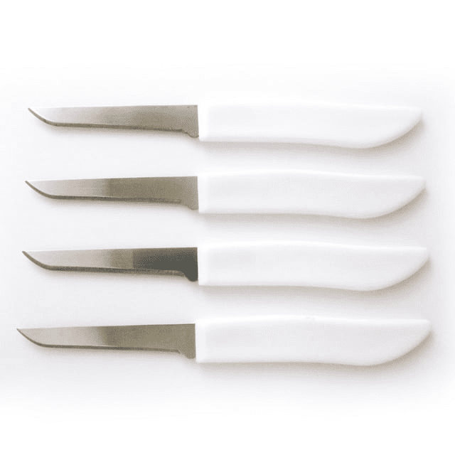 These paring knives have a super sharp short blade for maximum control and precision cutting. This set includes 4 knives.